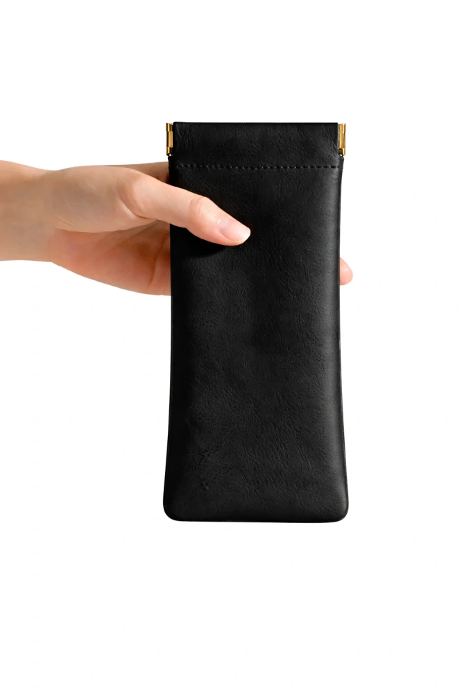 Toto stylové a praktické pouzdro na brýle od Nakida je vyrobeno z ekologické kůže v černé barvě.